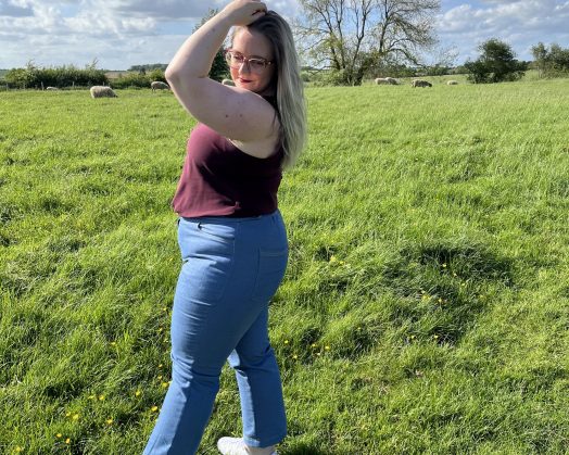 Personally, I struggle with finding the trendy ‘mum jeans’ that fit my curves, so those were my inspiration. I picked a light blue, lightweight stretch denim to emulate the ‘mum jeans’ look, and the fabric is beautifully soft and smooth with an ideal amount of stretch while still being able to hold its structure.