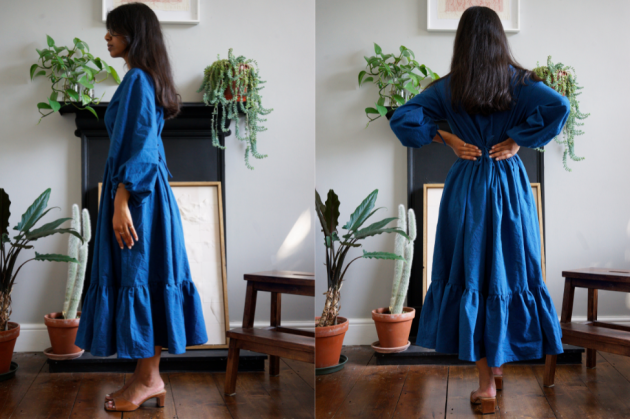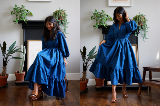 Hello! I am very excited to be writing my first blog post (ever), and for the lovely Backstitch team nonetheless! For this make, I wanted to sew something that felt a bit indulgent for me; something not necessarily needed in my wardrobe but will bring joy! One of my absolute favourite things to wear in warm weather is a big, oversized dress, and given that it’s still summer, my plans were set. I had this idea for a big sleeve, big skirt dress but couldn’t find the exact pattern I had in mind so decided to modify a pattern with some of the elements I was looking for. I typically wear lots of neutral colours but decided to challenge myself and go for a colour that still feels like me but adds more variety to my wardrobe. Here’s a breakdown on all the bits and bobs that went into this dress; from the pattern mods to style notes, and everything in between.