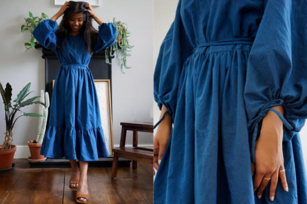 Fabric: The pattern calls for a light to mid-weight woven fabric. I decided to go for a cotton which has a bit more structure so that the sleeves and skirt would hold its shape more. I almost always sew neutral colours but wanted to challenge myself to sew with a bit more colour for this dress. In the end I chose this beautiful blue colour which somehow looks like a cross between a cobalt and true denim. The fabric itself is quite interesting as it has both dark and light threads woven together, which gives it a bit more depth which really helps give more dimension to oversized makes I find. I ended up sewing this dress out of 4m of fabric, using almost every last piece!