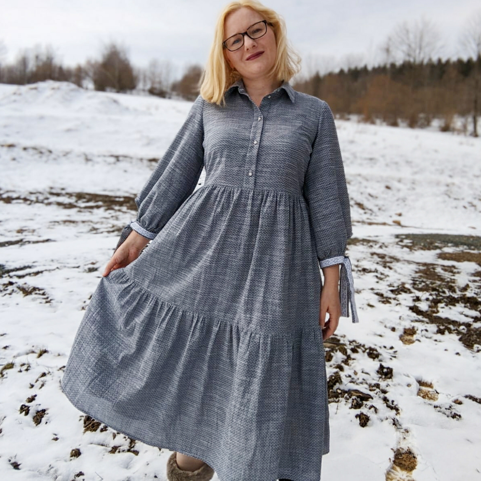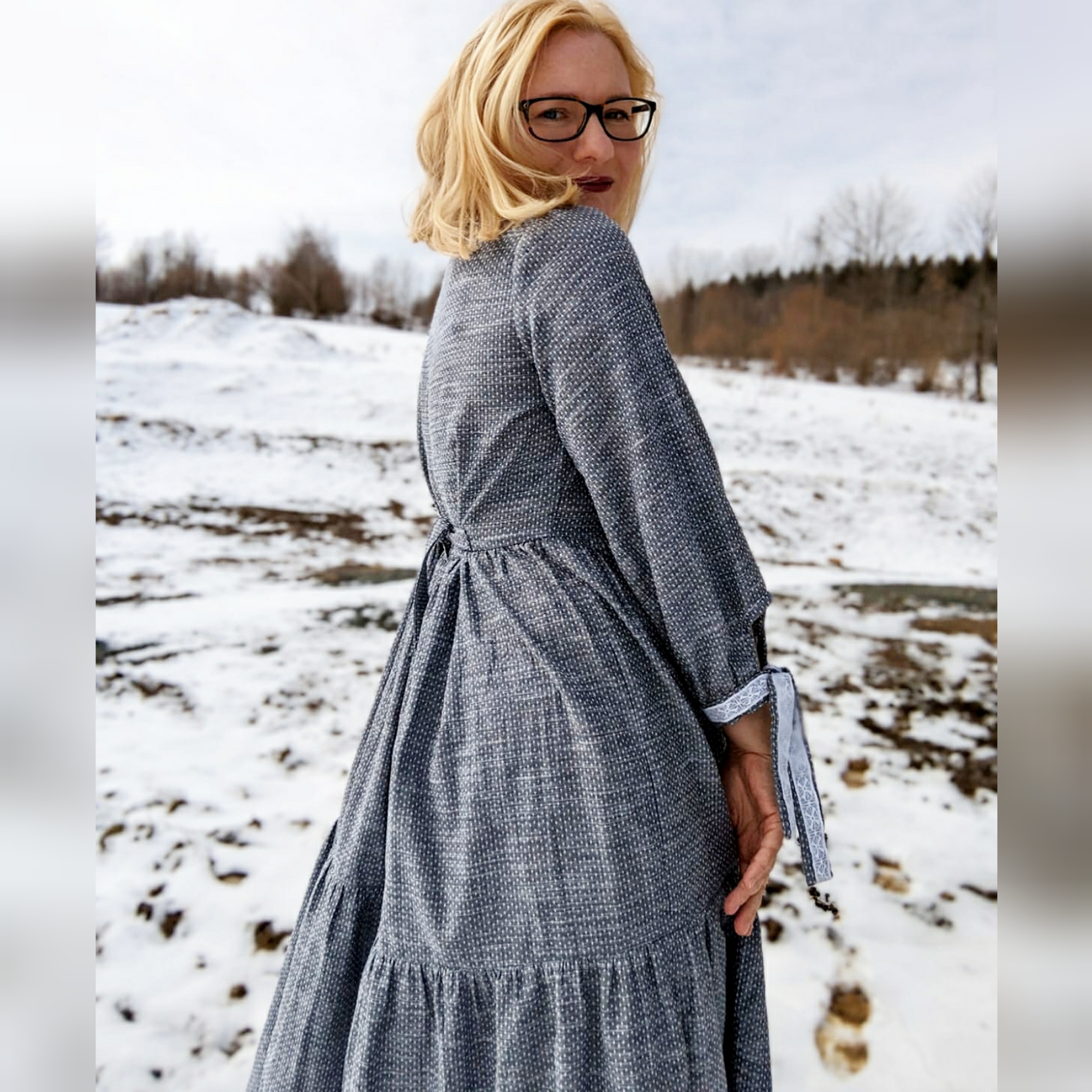 From my photos, you can see that it may take a while before I can wear this dress outside without tights and a jacket. Last year I moved out of the UK and currently live in the mountainous region of southwest Poland, where the snow is still going strong, even as I write this on the last day of March. However, I'm looking forward to wearing this dress a lot once the weather gets warmer.