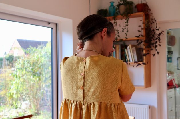 The Florence Top has the hallmark clean lines of all Merchant & Mills patterns with a few sweet details like this curved frill that dips at the front and rises at the rear, and the cute button-up back. The buttons are some old things from my button jar which of course was the most agonising of decisions in this make process.